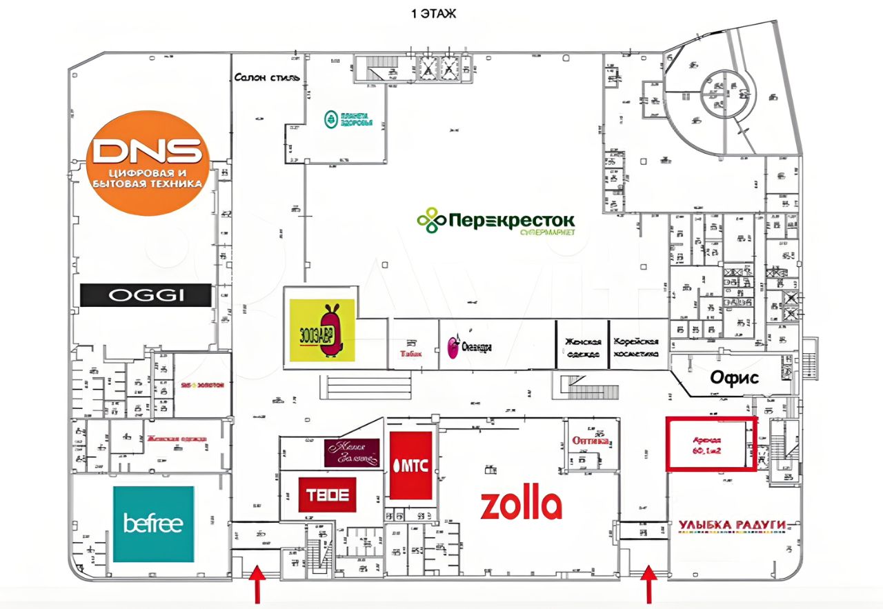 Помещение расположено на первом этаже при входе в торговый центр.