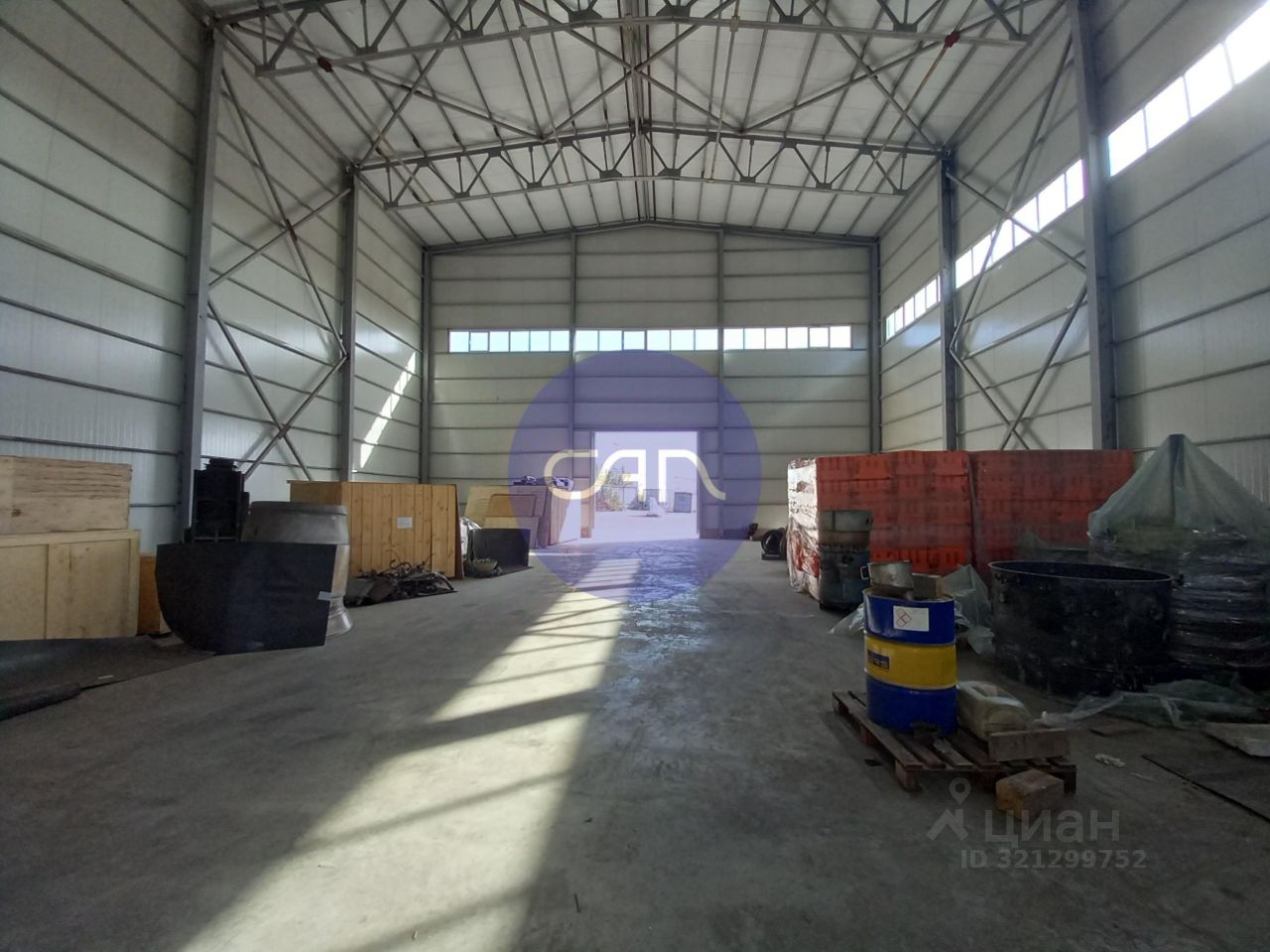 Двое ворот на нулевой отметке, потолок 12м. Пол Антипыль. Вода. Есть офис.