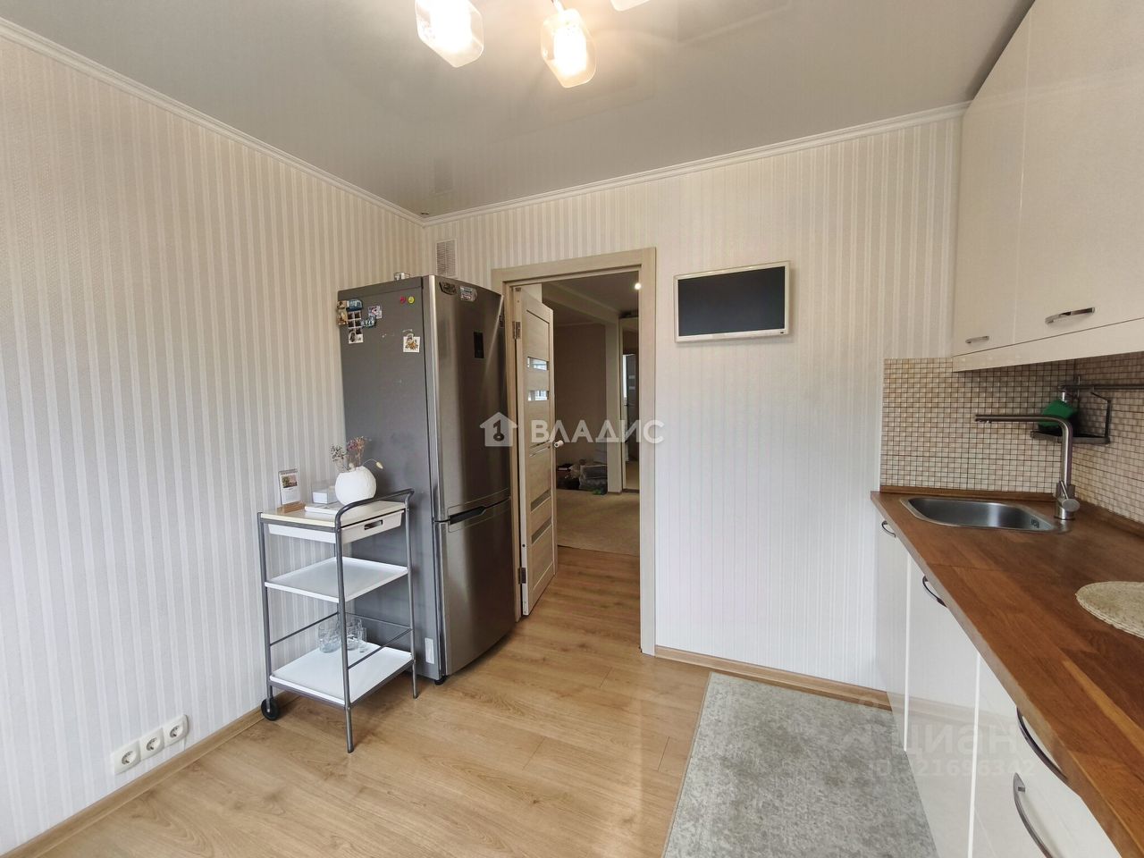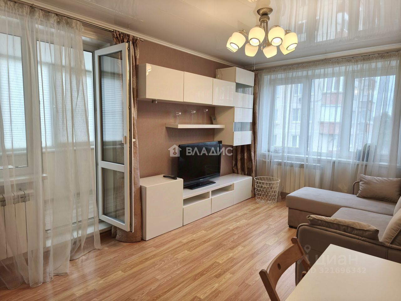 Квартира с хорошим ремонтом, комнаты изолированы, площадь комнат составляет 20 и 12 кв. м соответственно. Жилая площадь — 32 кв. м, кухня — 9 кв. м. Есть огромная утепленная лоджия. Окна выходят на улицу и во двор.