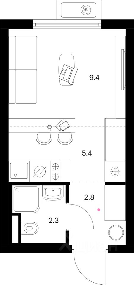 Жилая площадь9,4 м2