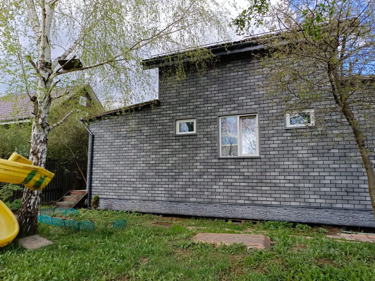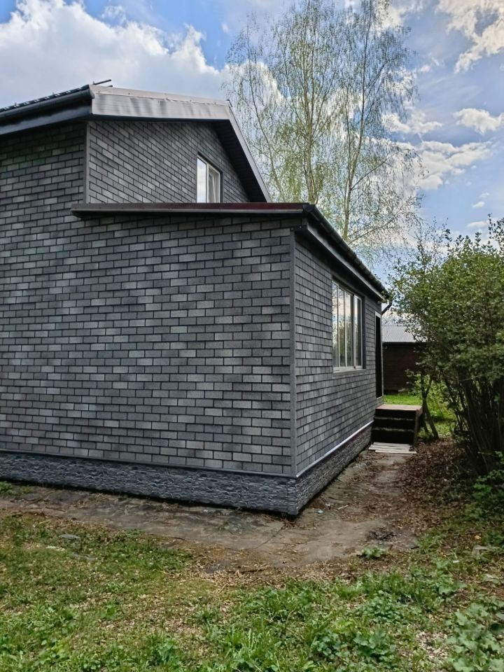 Дом 106 кв.м. также дополнительно имеется открытая веранда,установлен на сваях, утеплен, обшит облицовочным материалом Hauberk.