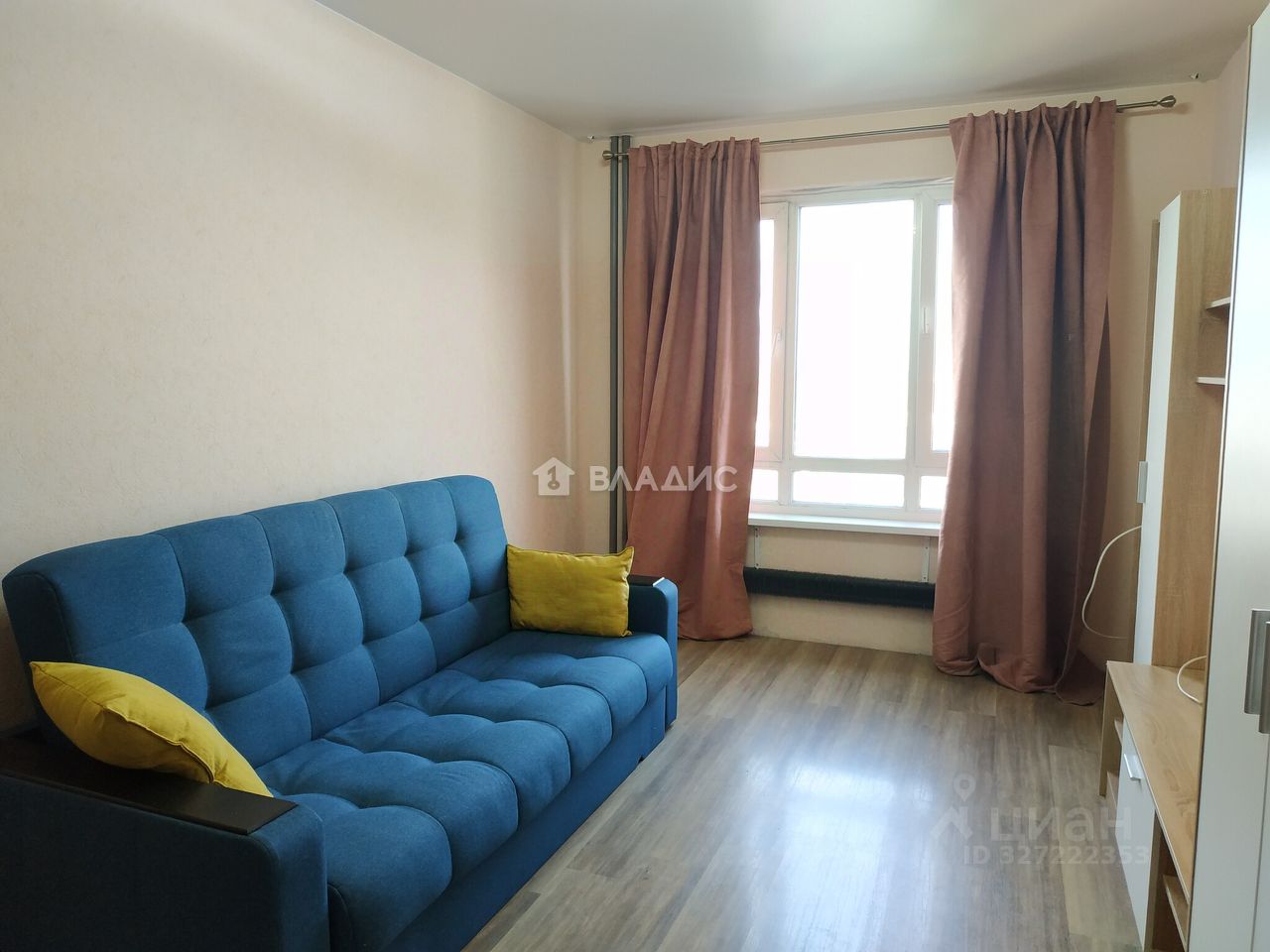 Квартира расположена на 11-м этаже 25-этажного монолитного дома. Жилая площадь составляет 17 кв.